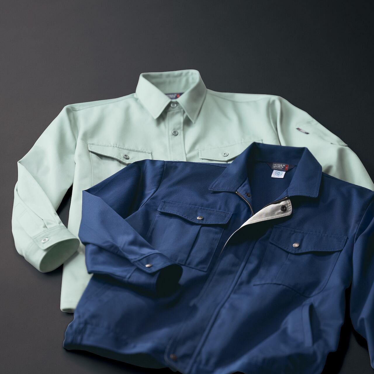 ペットボトル再生ポリエステルを使用した環境対応型エコマーク認定ワークウェア。